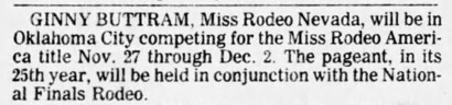We greatly appreciate whatever you can provide to complete the history of Ginny as a former Miss Rodeo Nevada Queen, should you have any photos, videos, Queen tear sheets or newspaper clippings in digital format.