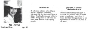 We greatly appreciate whatever you can provide to complete the history of Kimberly as a former Miss Rodeo Nevada Queen, should you have any photos, videos, Queen tear sheets or newspaper clippings in digital format.