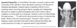 Jeanette represented the Silver State of Nevada at the 53rd Annual 2008 Miss Rodeo America Pageant in December 2007 during the Wrangler National Finals Rodeo in Las Vegas, Nevada.