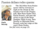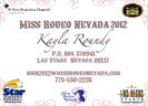 Kayla is extremely lucky to have a strong support system. She has a loving, closely knit family, an extended family from her extended Reno Rodeo family and a far reaching group of friends that embrace her. She knows that without all of them, her dream of becoming the 2012 Miss Rodeo Nevada may not have been realized. She is excited and honored to represent them, as well as herself, each time she dons her Miss Rodeo Nevada crown.